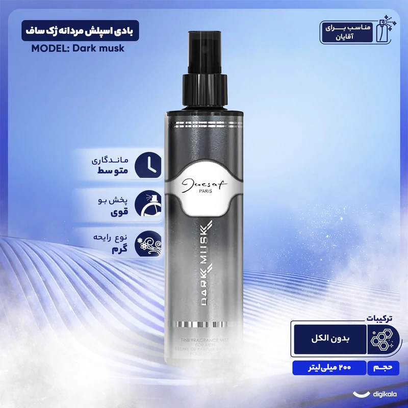 اسپری بدن دارک ماسک ژک ساف، یکی از محبوبترین محصولات بازار است. این اسپری طبعی گرم دارد و مخصوص آقایانی است که میخواهند در جمعهای دوستانه و قرارهای کاری بدرخشند و بوی خوشی به همراه داشته باشند. رایحههای این اسپری ترکیبی از گیاهان معطر و نتهای چوبی است. با استفاده از دارک ماسک، حس تازگی و انرژی مثبت را به خود و اطرافیانتان منتقل میکنید. این عطر مناسب تمام فصول، سنین و سلیقهها است و ماندگاری و پخش بوی بالایی دارد که تا پایان روز همراهتان خواهد بود. اگر دنبال یک اسپری بدن خاص و منحصر به فرد هستید، اسپری بدن دارک ماسک ژک ساف گزینهای عالی است.