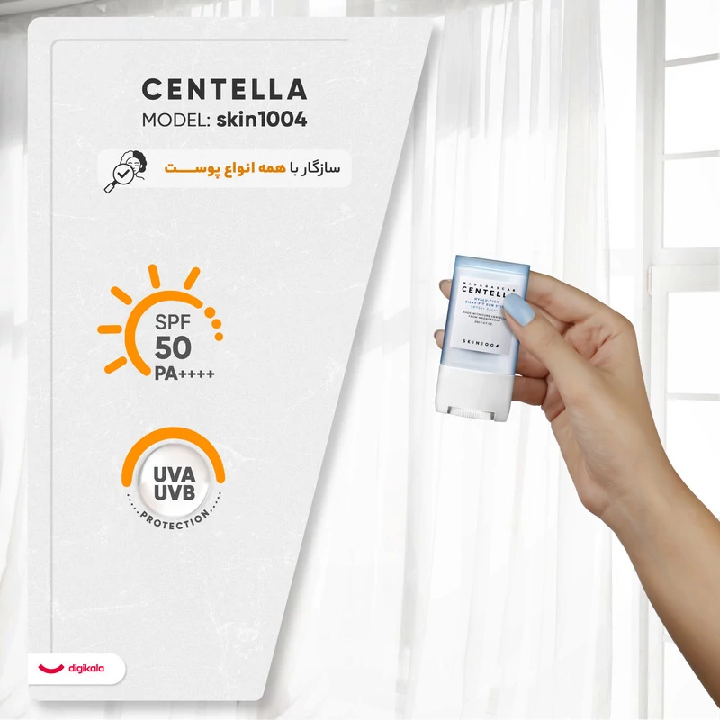 ضد آفتاب استیکی سنتلا کرهای با جلوگیری از اثرگذاری اشعات فرابنفش،با ترکیبات آبرسان و مرطوب کننده اش پوست را از خشکی نجات میدهد و از همین رو برای پوستهای خشک، کم آبر و زبر انتخابی عالی محسوب میشود.این استیک ضد آفتاب جنسیت خاصی ندارد و چون بی رنگ هست علاوه بر بانوان، آقایان هم میتوانند از آن استفاده کنید بدون آنکه ردی از ضد آفتاب به جا بماند. ضد آفتاب استیکی Hyalu cica محصولی از کشور کره جنوبی و برند 1004 Skin می باشد که امروزه بسیار محبوب شده و برخی از زیباجویان و افراد مشهور از آن استفاده میکنند.
